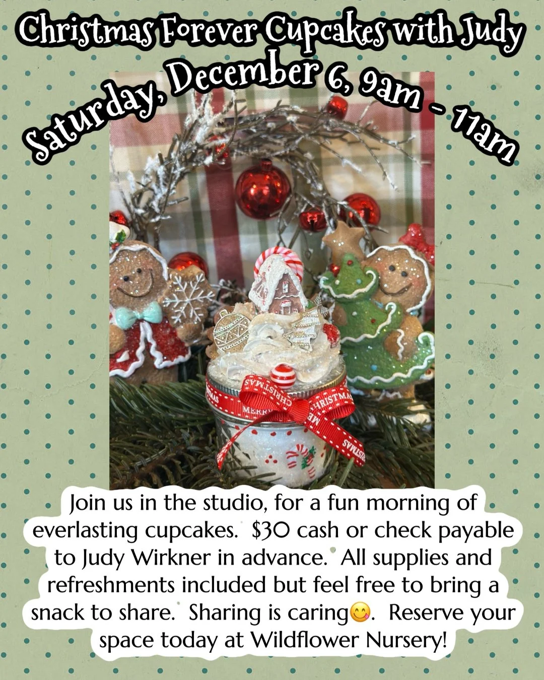 Dec 6 Christmas Forever Cupcakes with Judy Saturday, December 6, 2025 9:00 AM 11:00 AM Google Calendar ICS View Event →
