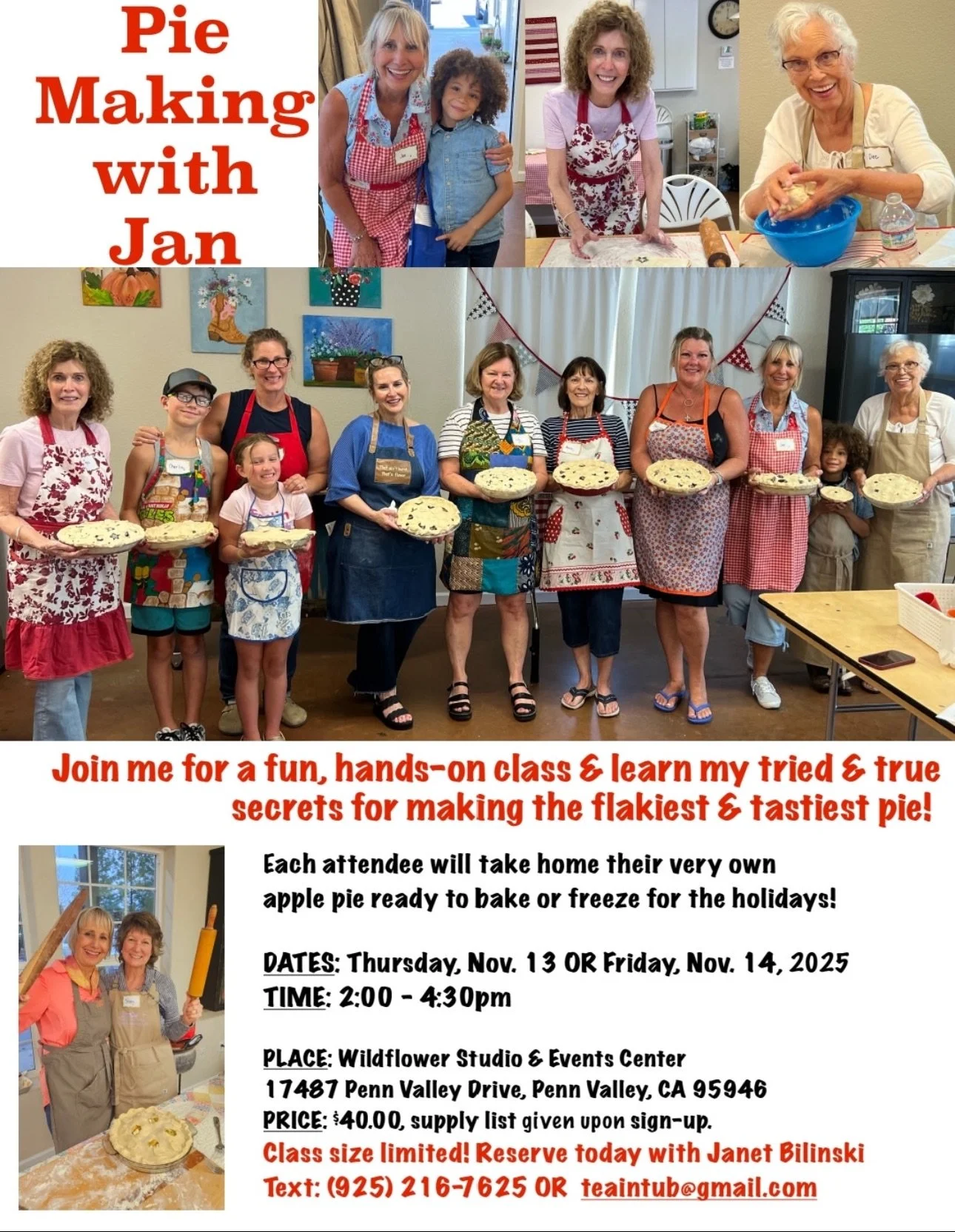 Nov 14 Pie Making with Jan Friday, November 14, 2025 2:00 PM 4:30 PM Google Calendar ICS View Event →