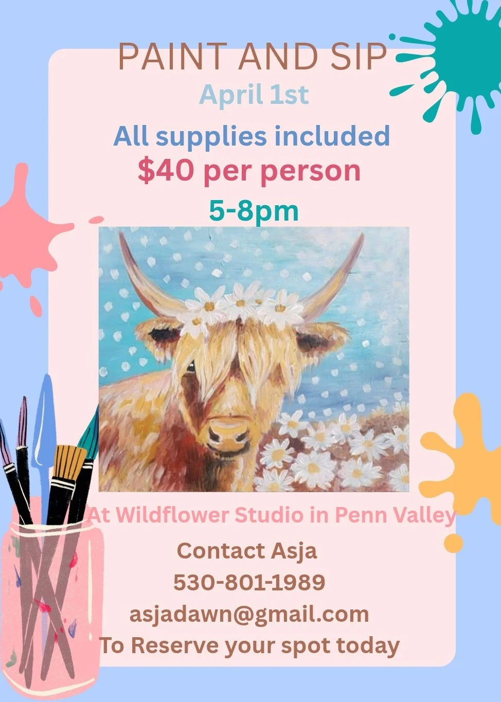 Back to All Events PAINT AND SIP- Daisy Cow Wednesday, April 1, 2026 5:00 PM 8:00 PM Google Calendar ICS